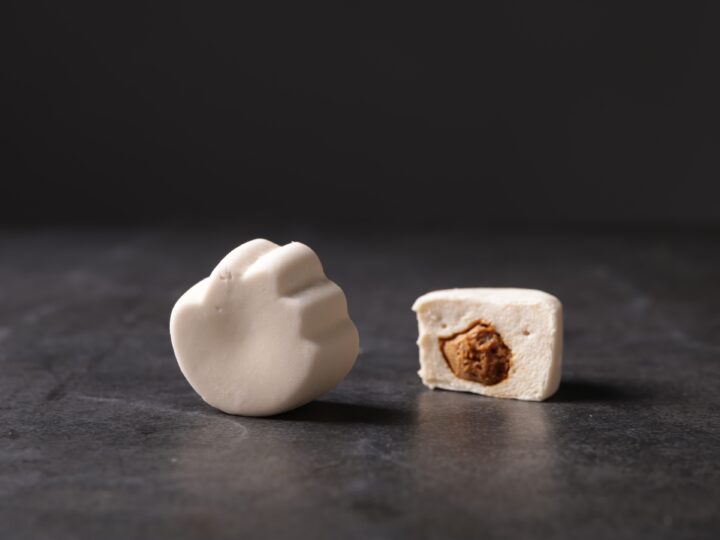 看板商品「祝うてサンド」は、手のかたちのクッキーで焦がしキャラメルクリームとキャラメリゼしたクルミをサンドした一品。香ばしさとコク、食感のバランスが特徴のキャラメルスイーツとなっている。
