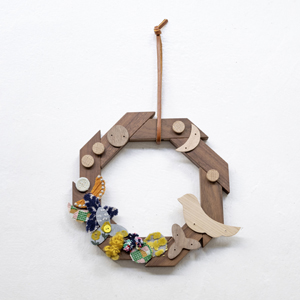 家具製作時の端材とミナ ペルホネンのテキスタイルを使った「木製クリスマスリース ワークショップ」も開催。