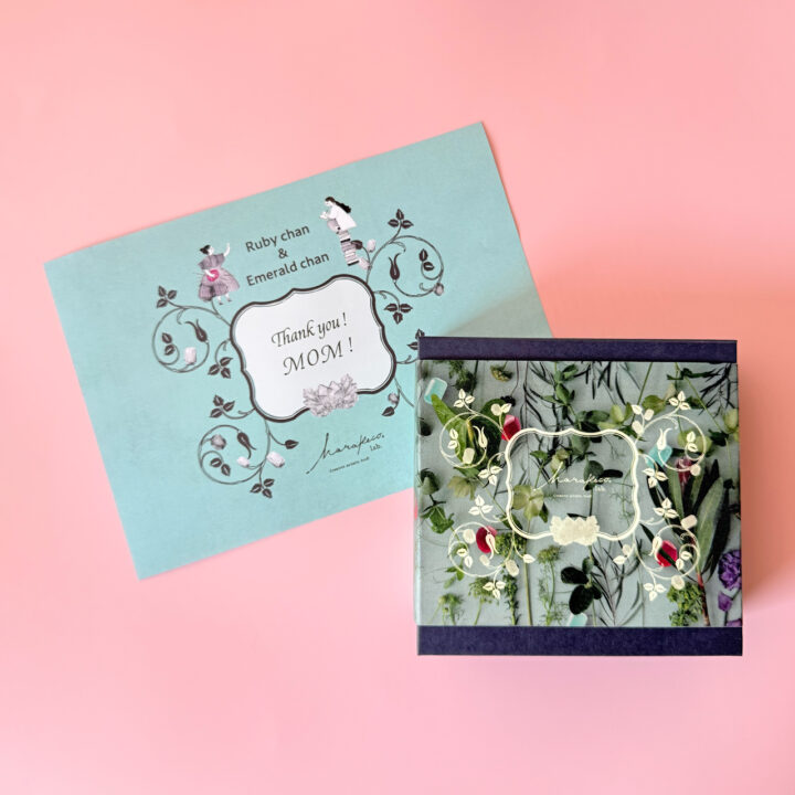 セットには母の日メッセージやカードが付属し、直接会えない相手にも想いを届ける仕様。梱包にも専用シールが施され、贈り物としての完成度を高めている。