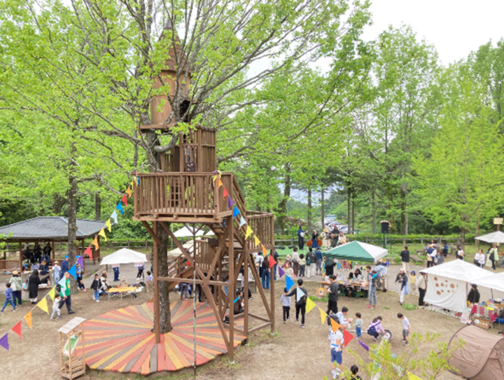 会場となる油山市民の森・森のひろば周辺には、ツリーハウスや広場、青々とした木々に囲まれた豊かな自然が広がり、鳥のさえずりや川のせせらぎに包まれながら一日を過ごせるロケーションとなっている。