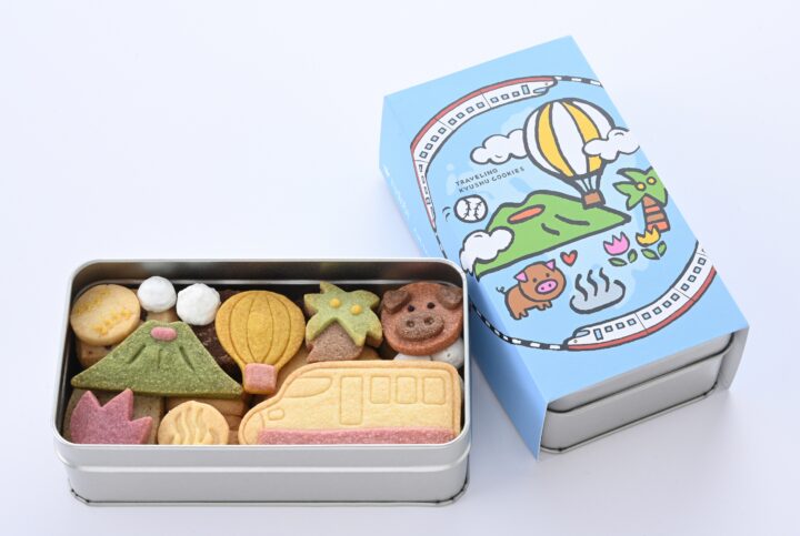 新商品「旅する九州クッキー」は、「九州のおいしいものや名所を列車に乗って巡る」というコンセプトのもと開発された。福岡の野球ボール、佐賀の気球、長崎のチューリップ、熊本の阿蘇山、大分の温泉、宮崎のヤシの木、鹿児島の黒豚など、九州各地を象徴するモチーフをかたどったクッキーを詰め合わせ、旅気分を味わえる手土産として提案する。