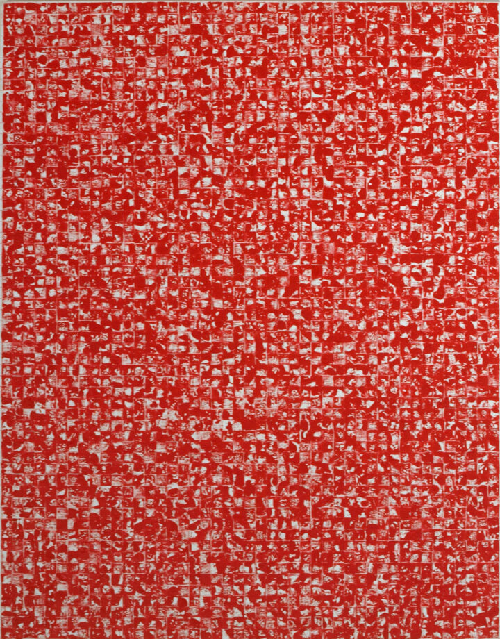 一方、神園宏彰の《光の集積》シリーズは、17世紀フランスの画家ジョルジュ・ド・ラ・トゥール《マグダラのマリア》に描かれた蝋燭の炎から着想を得た抽象作品。単色の画面に複数の光のイメージを重ね、闇を照らす希望としての光を現代的に再解釈する。異なる光のイメージが繰り返されることで、「光の集積」という概念が画面上に立ち上がる。