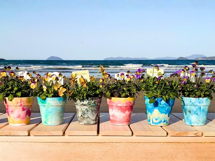 販売されるのは、クジラキーホルダー、オリジナルコースター、フラワーポットの3種類。いずれもマーブル模様が特徴で、同じものは二つとない一点物として展開される。