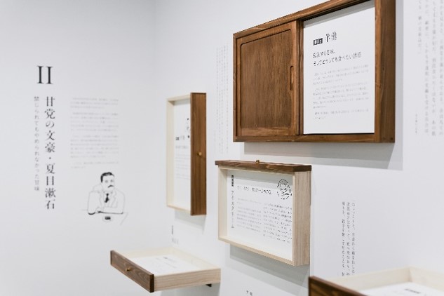 企画展エリアでは、開業記念として第1回企画展「100人による、私だけの漱石。」を開催。「あなたにとって漱石はどんな存在か」という問いに対する著名人や地域読者ら約100名のコメントを展示し、多様な視点から漱石像を浮かび上がらせる。