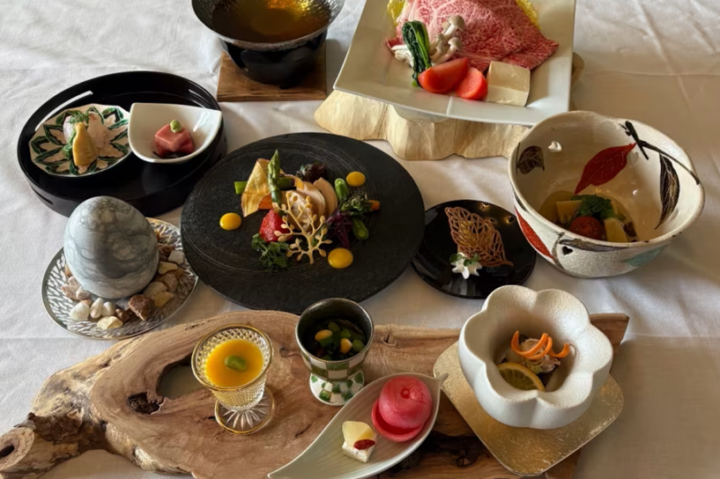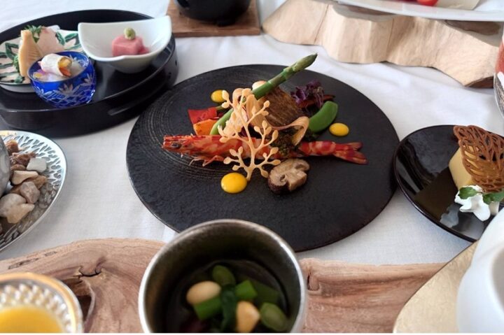 食事は、天草の海の幸や肥後の山の幸を活かした創作会席に加え、離れでは専用テラスでのプライベートBBQも用意。地産地消にこだわった多彩な食体験が楽しめる。