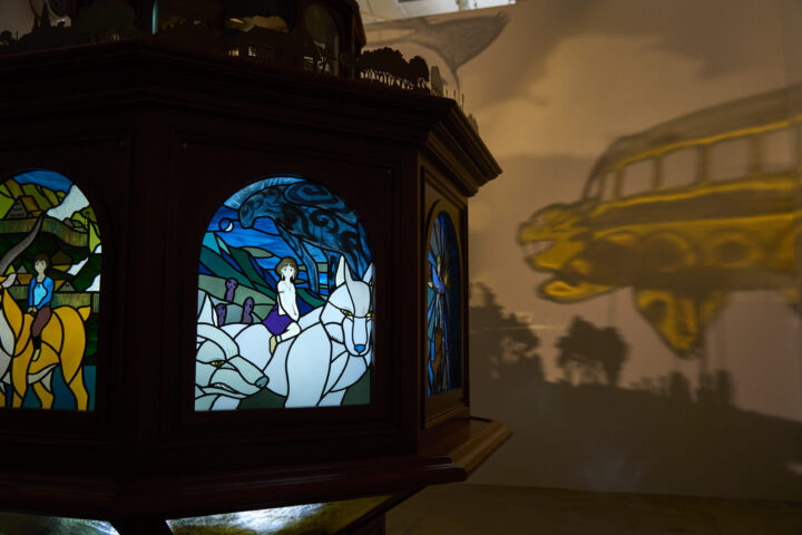 さらに、ガラス作品と光の演出によってジブリの世界観を表現する大型インスタレーション「ジブリの幻燈楼」や、『風の谷のナウシカ』の腐海を再現した造形展示なども展開予定。作品の舞台を思わせる幻想的な空間で、ジブリの魅力を体感できる展覧会となる。